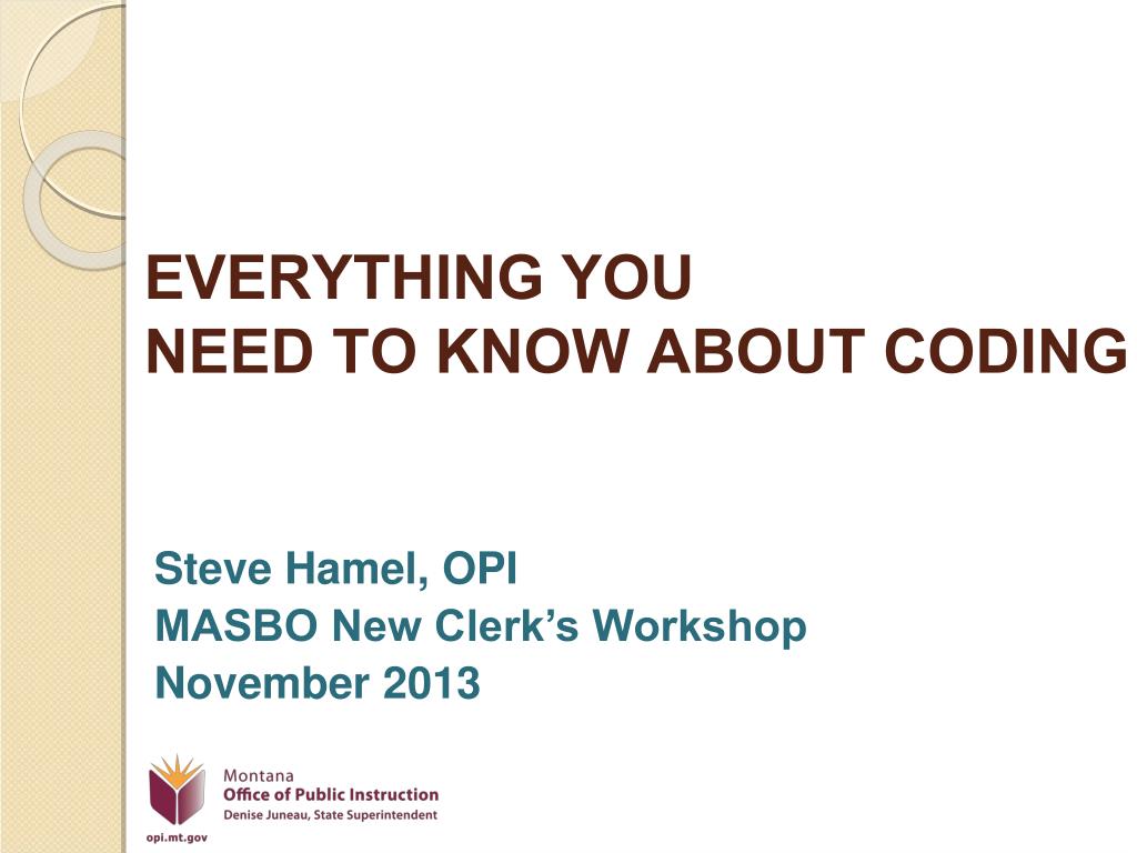 EVERYTHING YOU NEED TO KNOW ABOUT CODING Steve Hamel, OPI MASBO New Clerk’s Workshop November 2013