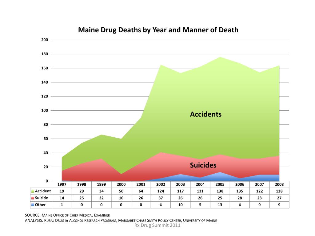 Accidents SOURCE: Maine Office of Chief Medical Examiner ANALYSIS: Rural Drug & Alcohol Research Program, Margaret Chase Smith Policy Center, University of Maine Rx Drug Summit 2011