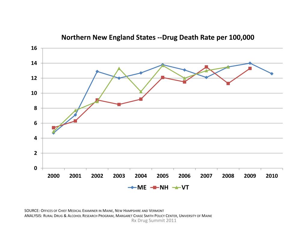SOURCE: Offices of Chief Medical Examiner in Maine, New Hampshire and Vermont ANALYSIS: Rural Drug & Alcohol Research Program, Margaret Chase Smith Policy Center, University of Maine Rx Drug Summit 2011