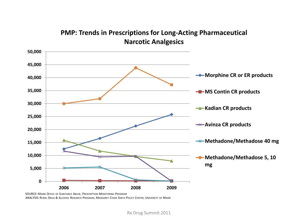 SOURCE: Maine Office of Substance Abuse, Prescription Monitoring Program ANALYSIS: Rural Drug & Alcohol Research Program, Margaret Chase Smith Policy Center, University of Maine Rx Drug Summit 2011