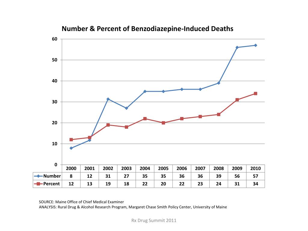 (OPIOID) (OPIOID) (BENZODIAZEPINE) (OPIOID) SOURCE: MAINE OFFICE OF CHIEF MEDICAL EXAMINER ANALYSIS: RURAL DRUG & ALCOHOL RESEARCH PROGRAM, MARGARET CHASE SMITH POLICY CENTER, UNIVERSITY OF MAINE Rx Drug Summit 2011