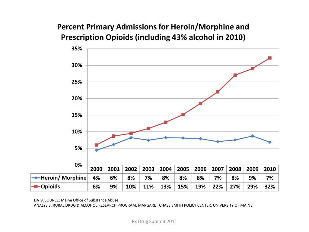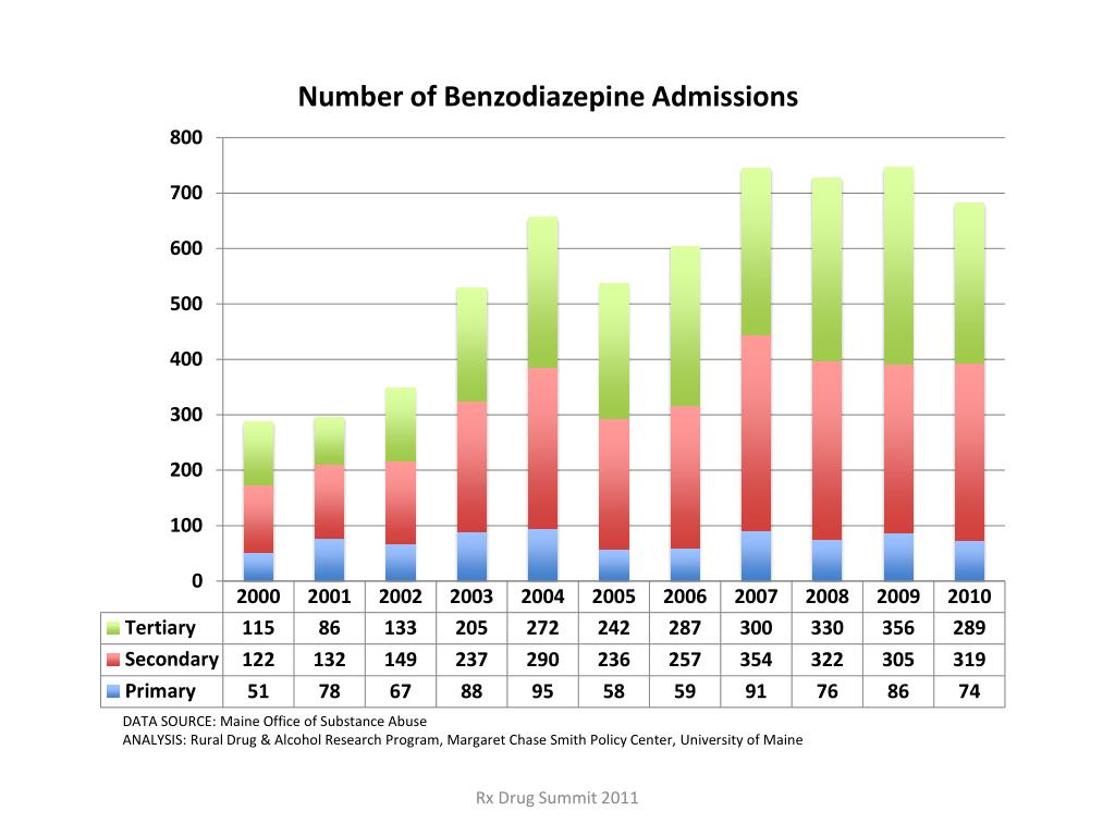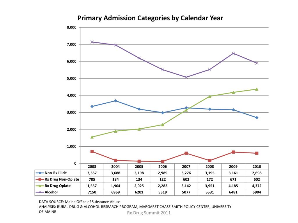 DATA SOURCE: Maine Office of Substance Abuse ANALYSIS: RURAL DRUG & ALCOHOL RESEARCH PROGRAM, MARGARET CHASE SMITH POLICY CENTER, UNIVERSITY OF MAINE Rx Drug Summit 2011