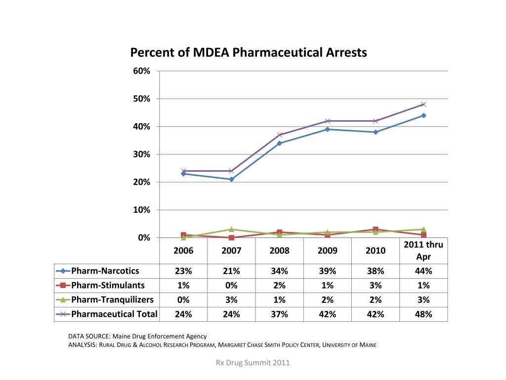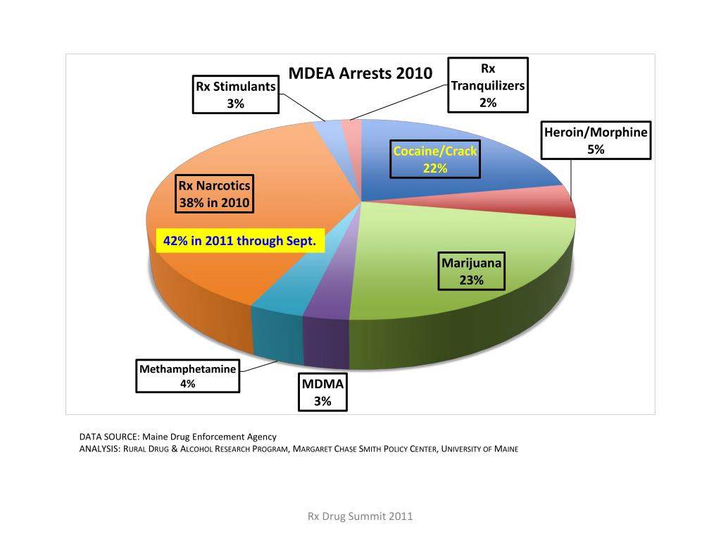 42% in 2011 through Sept. DATA SOURCE: Maine Drug Enforcement Agency ANALYSIS: Rural Drug & Alcohol Research Program, Margaret Chase Smith Policy Center, University of Maine Rx Drug Summit 2011