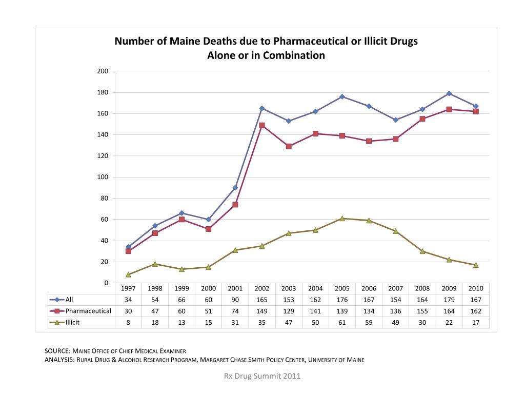 Pharmaceutical Abuse Trends in Maine Margaret Greenwald, MD Maine Chief Medical Examiner & Marcella H. Sorg, PhD Margaret Chase Smith Policy Center University of Maine Rx Drug Summit 2011