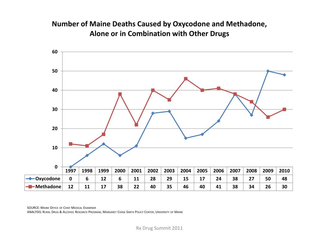 DATA SOURCE: Maine Health & Environmental Testing Lab ANALYSIS: Rural Drug & Alcohol Research Program, Margaret Chase Smith Policy Center, University of Maine Rx Drug Summit 2011