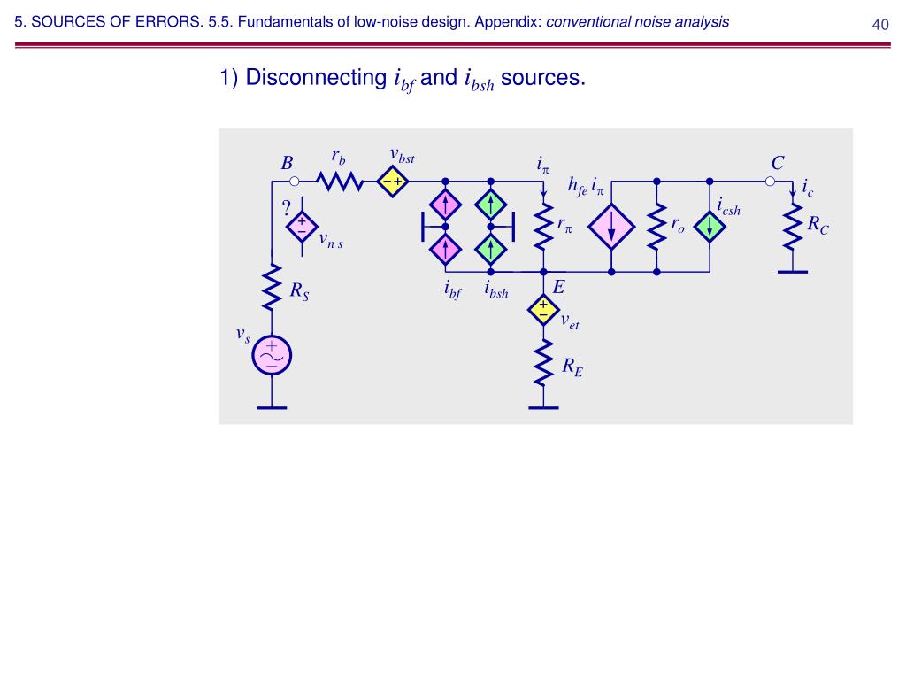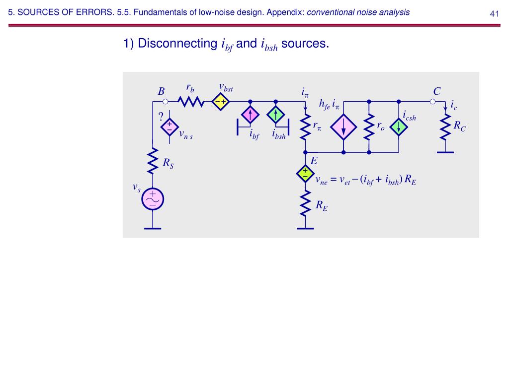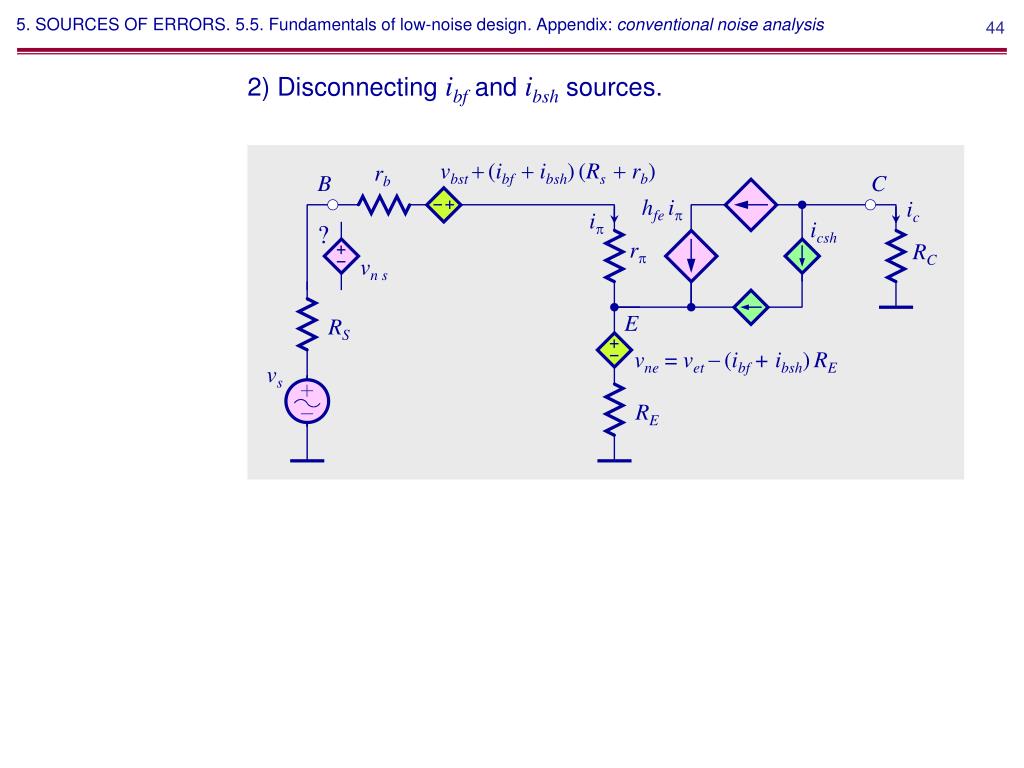 vbst ibf ibf ibsh ibsh vne= vet -(ibf + ibsh)RE 5. SOURCES OF ERRORS. 5.5. Fundamentals of low-noise design. Appendix: conventional noise analysis 1) Disconnecting ibf and ibsh sources. rb B ip C hfe ip ic icsh ? rp ro RC vn s E RS vet vs RE