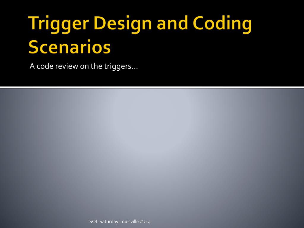 Trigger Design and Coding Scenarios A code review on the triggers… SQL Saturday Louisville #214