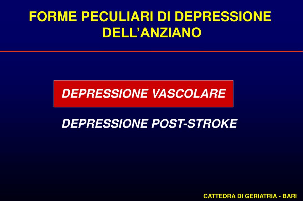 FORME PECULIARI DI DEPRESSIONE DELLE PERSONE ANZIANE DEPRESSIONE VASCOLARE DEPRESSIONE POST-STROKE CATTEDRA DI GERIATRIA - BARI