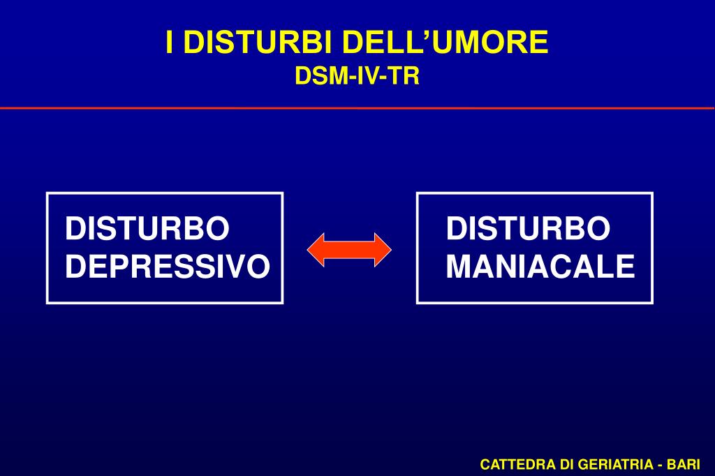 I DISTURBI DELL’UMORE DSM-IV-TR DISTURBO DISTURBO DEPRESSIVO MANIACALE CATTEDRA DI GERIATRIA - BARI