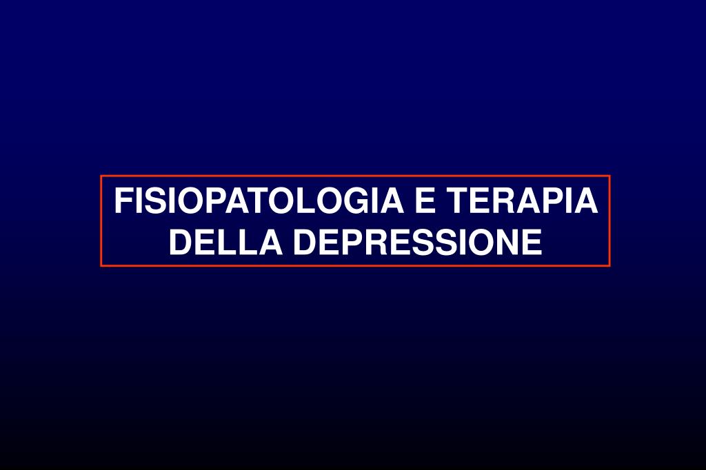 DEPRESSIONE MAGGIORE (DSM-IV-TR) DISTURBI SOMATICO-VEGETATIVI Anoressia (o bulimia) Perdita di peso (o aumento) Stipsi ostinata Insonnia costante (o ipersonnia) DISTURBI PSICOLOGICI Agitazione psicomotoria (o rallentamento) Facile affaticabilità o mancanza di energie Sentimenti di autosvalutazione Sentimenti di colpa eccessivi o inappropriati Ridotta capacità di pensare o di concentrarsi Pensieri ricorrenti di morte, tentativo di suicidio