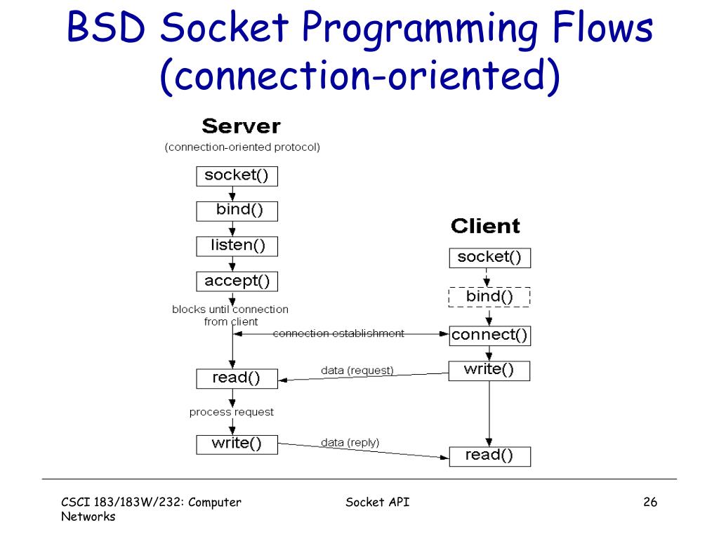 BSD Socket Programming Flows (connection-oriented) Socket API