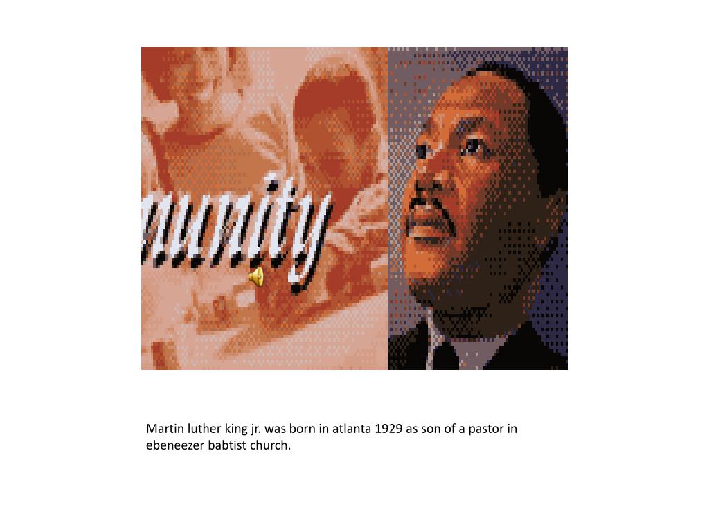 Martin luther king jr. was born in atlanta 1929 as son of a pastor in ebeneezerbabtist church.