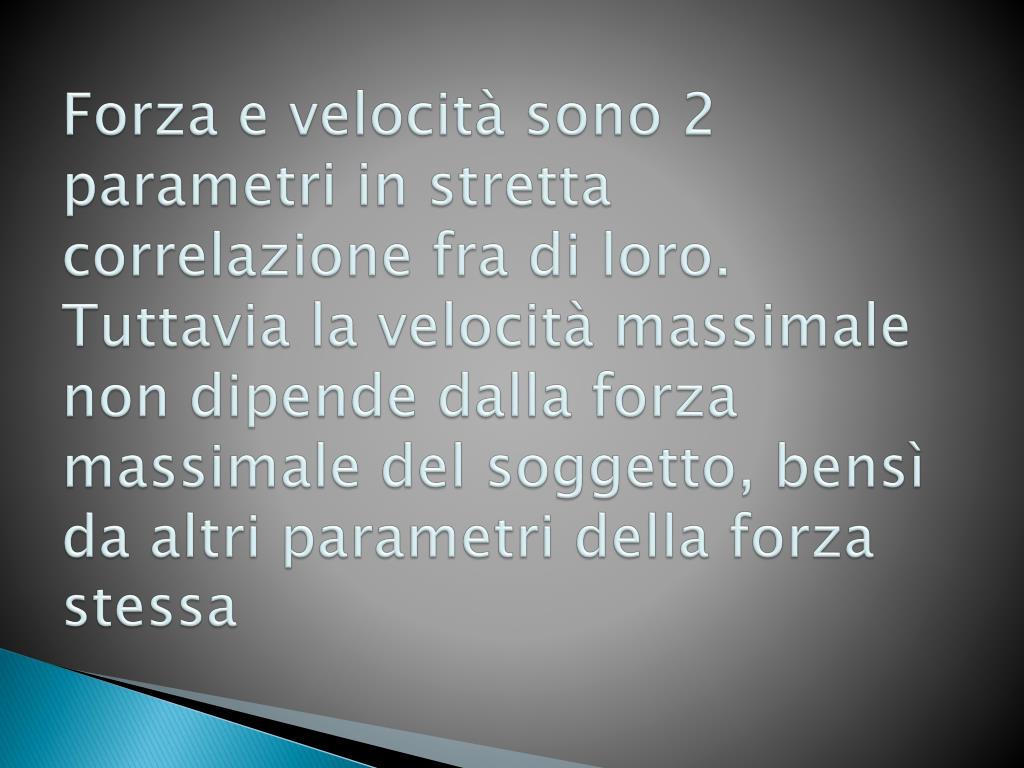 Forza e velocità sono 2 parametri in stretta correlazione fra di loro.Tuttavia la velocità massimale non dipende dalla forza massimale del soggetto, bensì da altri parametri della forza stessa
