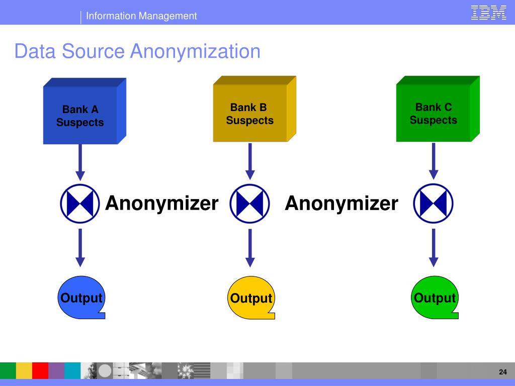 Data Source Anonymization Bank C Suspects Bank B Suspects Bank A Suspects Anonymizer Anonymizer Output Output Output