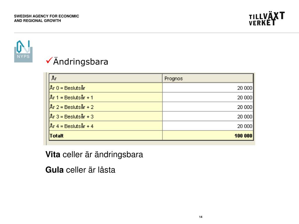 Ändringsbara Vita celler är ändringsbara Gula celler är låsta