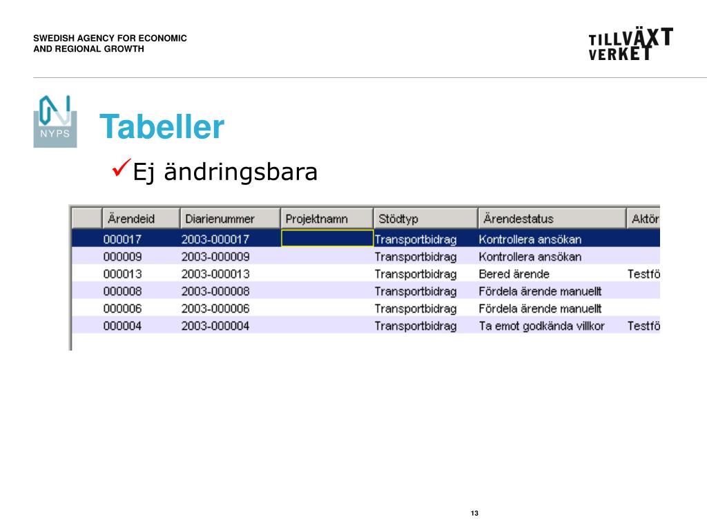 Webbansökan Handläggning Diarieföring Ansökan Diarieföring Beslut 1 Beslut 1 NYPS ”KUND” ”KUND” STINS Beslut 2 Handläggning Beslut 2 Utbetalning Utbetaln Nytt sätt att arbeta! Ärendehanterings- system Registrerings- system