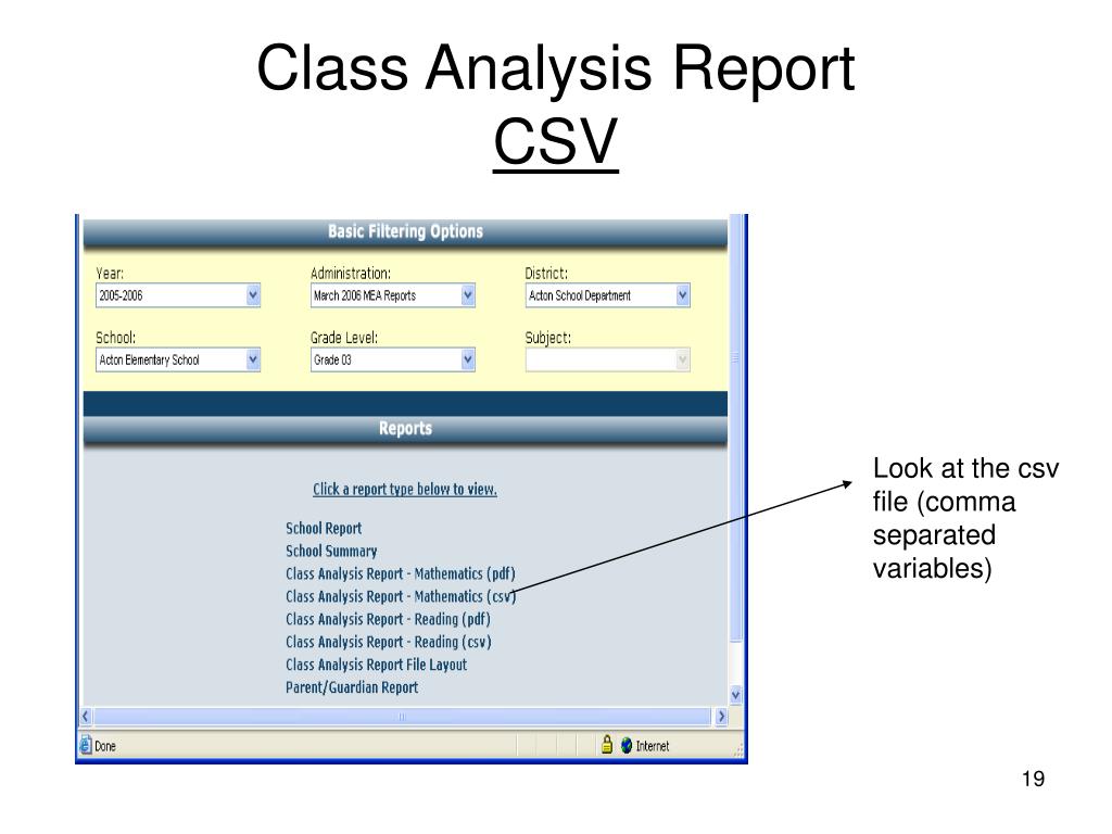 Class Analysis ReportCSV Look at the csv file (comma separated variables)
