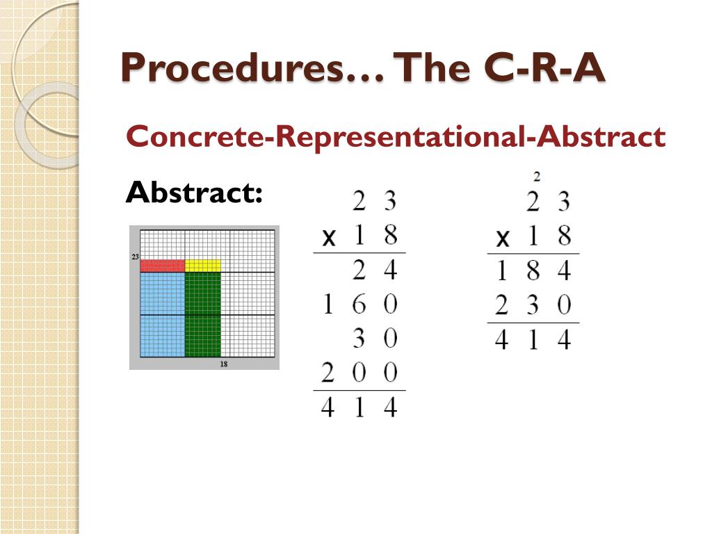 Procedures… The C-R-A Concrete-Representational-Abstract Abstract: