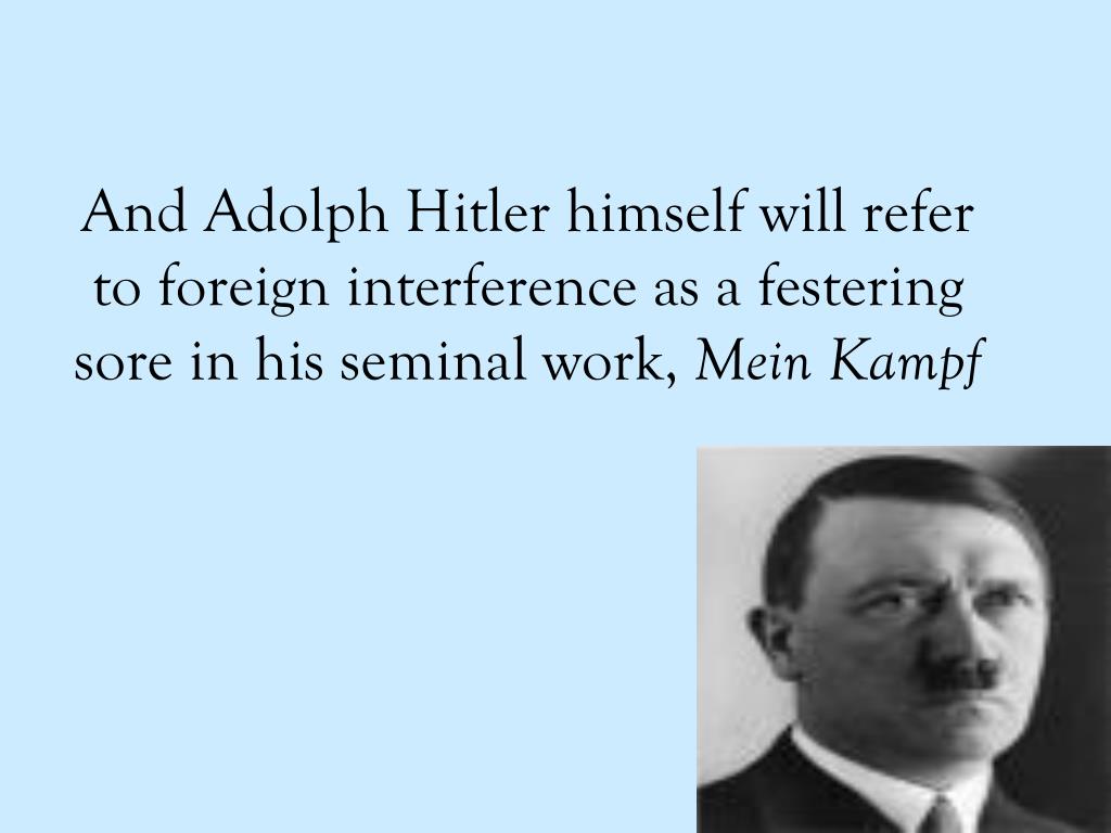 And Adolph Hitler himself will refer to foreign interference as a festering sore in his seminal work, Mein Kampf