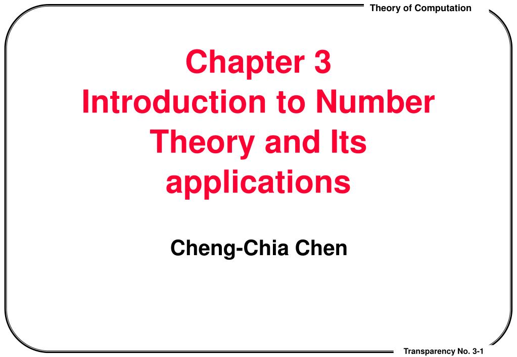 Chapter 3Introduction to NumberTheory and Its applications Cheng-Chia Chen