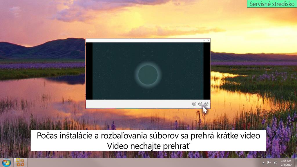 Servisné stredisko Počas inštalácie a rozbaľovania súborov sa prehrá krátke video Video nechajte prehrať