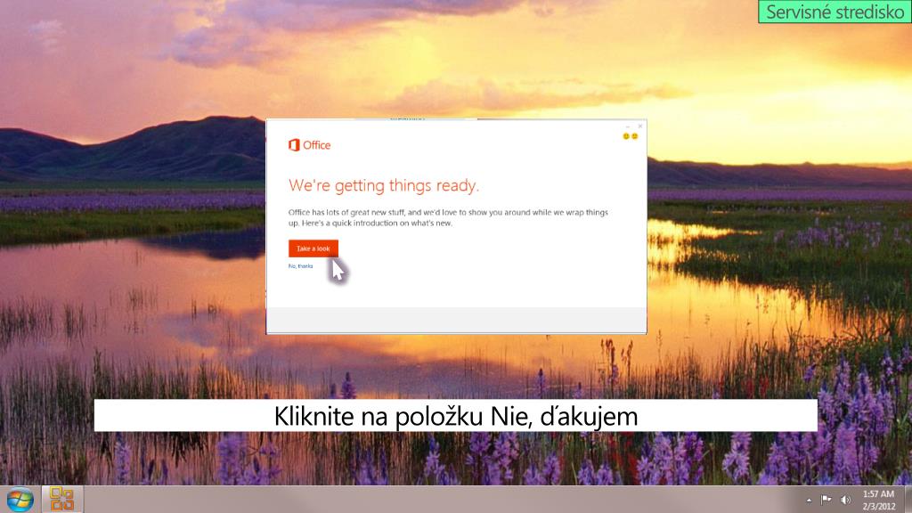 Servisné stredisko Kliknite na položku Nie, ďakujem
