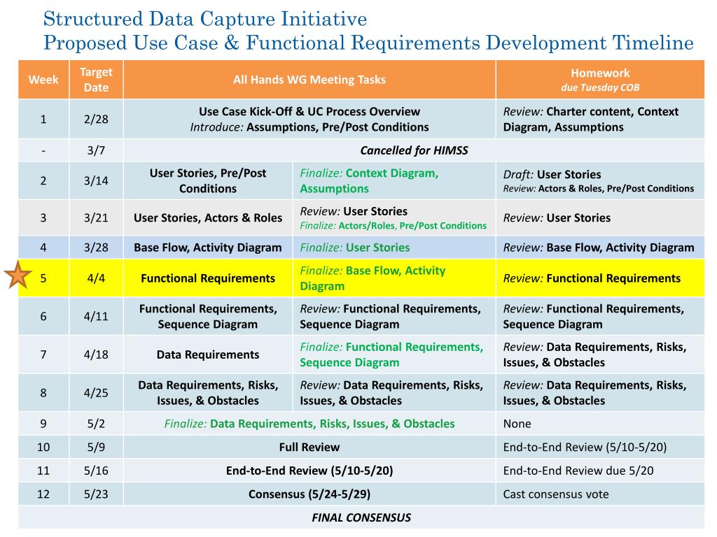 Structured Data Capture InitiativeProposed Use Case & Functional Requirements Development Timeline