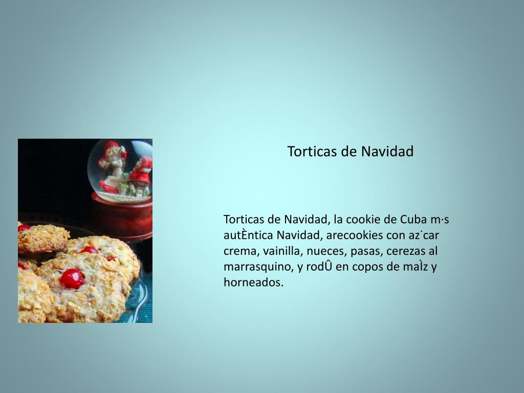 Torticas de Navidad Torticas de Navidad, la cookie de Cuba m·sautÈnticaNavidad, arecookies con az˙carcrema, vainilla, nueces, pasas, cerezas al marrasquino, yrodÛ en copos de maÌzyhorneados.