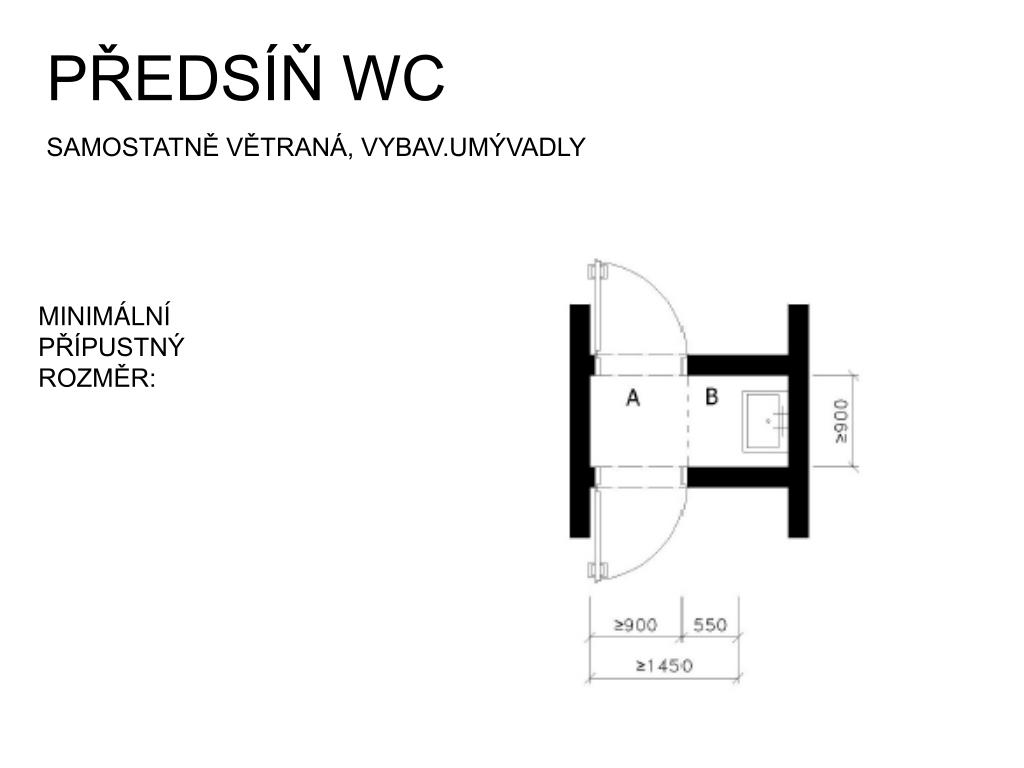 PŘEDSÍŇ WC SAMOSTATNĚ VĚTRANÁ, VYBAV.UMÝVADLY MINIMÁLNÍ PŘÍPUSTNÝROZMĚR: