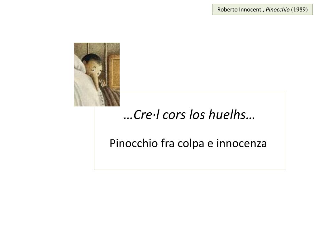 Roberto Innocenti, Pinocchio (1989). …Cre·l cors los huelhs…. Pinocchio fra colpa e innocenza. Arnaut Daniel (sec. XII), L’aur’amara fa· ls bruels brancutz .
