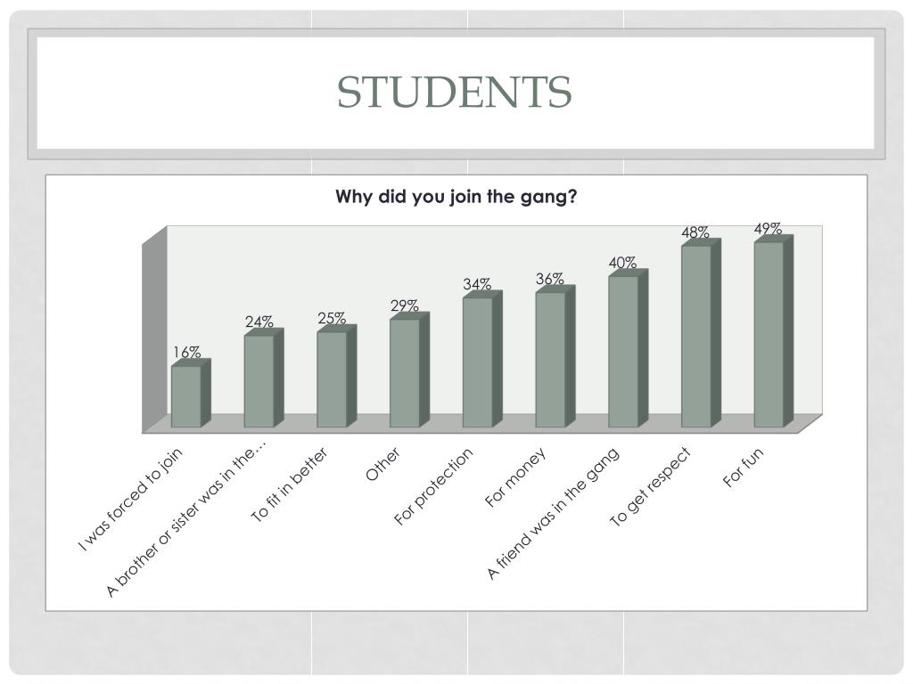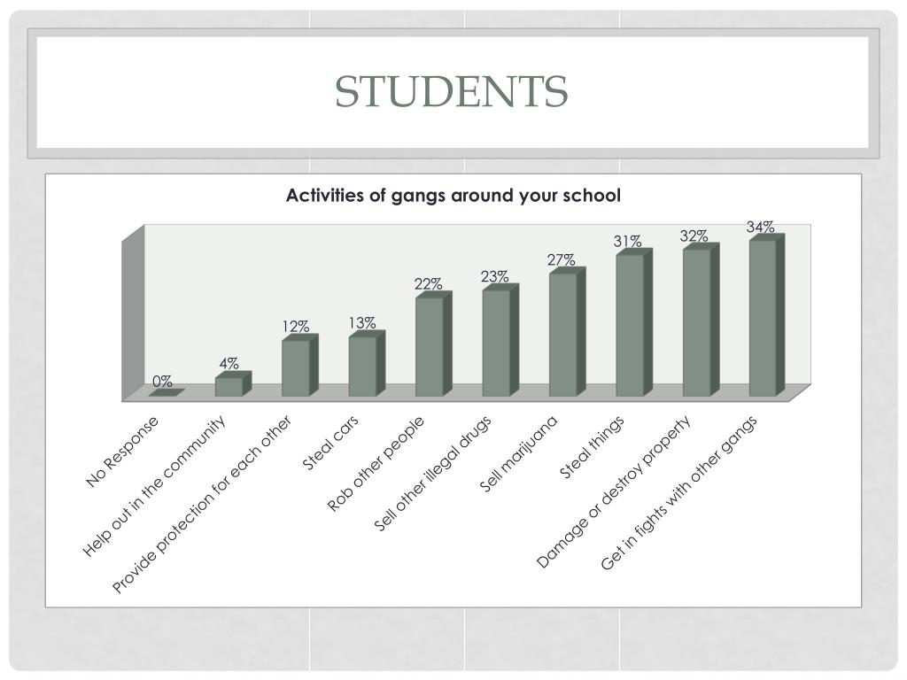 Key Findings A lack of common definitions and criteria for Gang Membership and Gang Activity made the analysis of Gang Crime difficult. Additionally, the old system for tracking law enforcement activity called for individual assessments of incident reports, this and the absence of a dedicated Crime Analyst has also been a challenge in assessing crime activity.