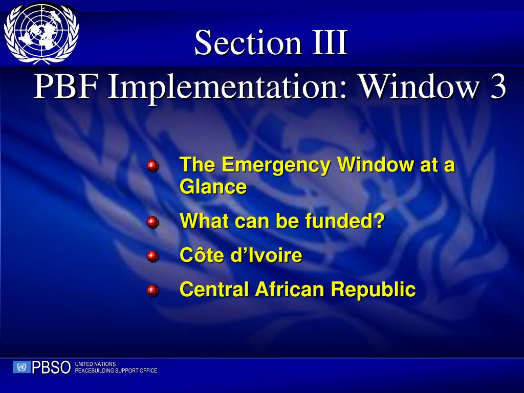 The Emergency Window at a Glance What can be funded? Côte d’Ivoire Central African Republic Section IIIPBF Implementation: Window 3
