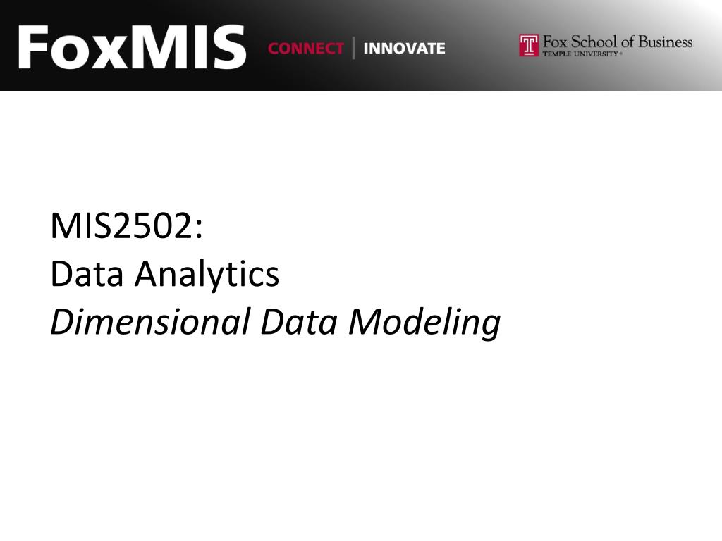 MIS2502: Data Analytics Dimensional Data Modeling. Where we are…. Now we’re here…. Data entry. Transactional Database. Data extraction. Analytical Data Store. Data analysis. Stores real-time transactional data. Stores historical transactional and summary data . What do we know so far?.