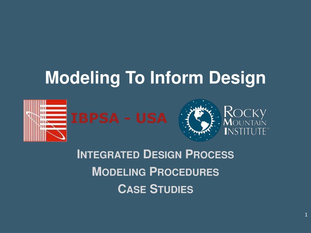 Modeling To Inform Design IBPSA - USA Integrated Design Process Modeling Procedures Case Studies 1