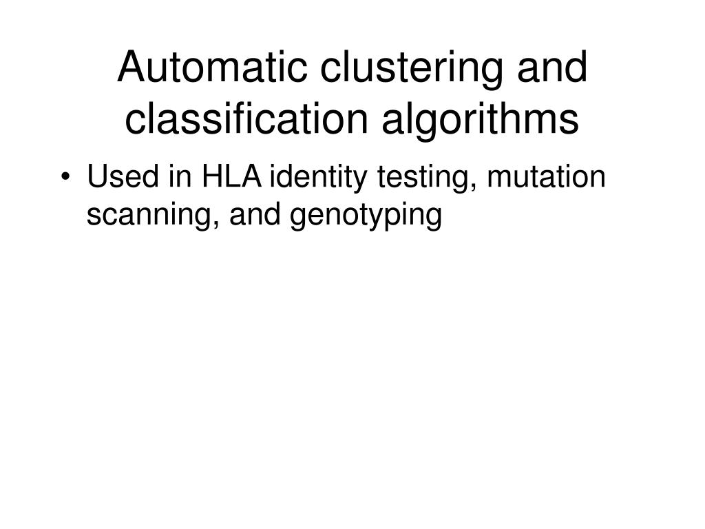 Automatic clustering and classification algorithms • Used in HLA identity testing, mutation scanning, and genotyping
