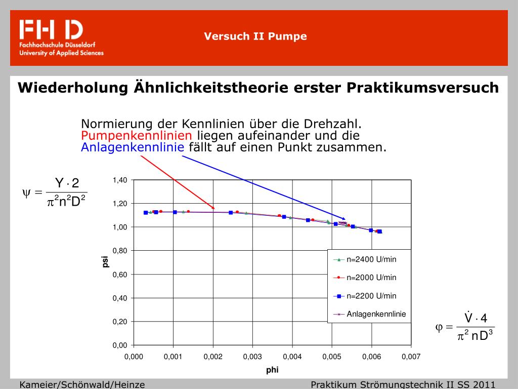 Wiederholung Ähnlichkeitstheorie erster Praktikumsversuch Normierung der Kennlinien über die Drehzahl. Pumpenkennlinien liegen aufeinander und die Anlagenkennlinie fällt auf einen Punkt zusammen.