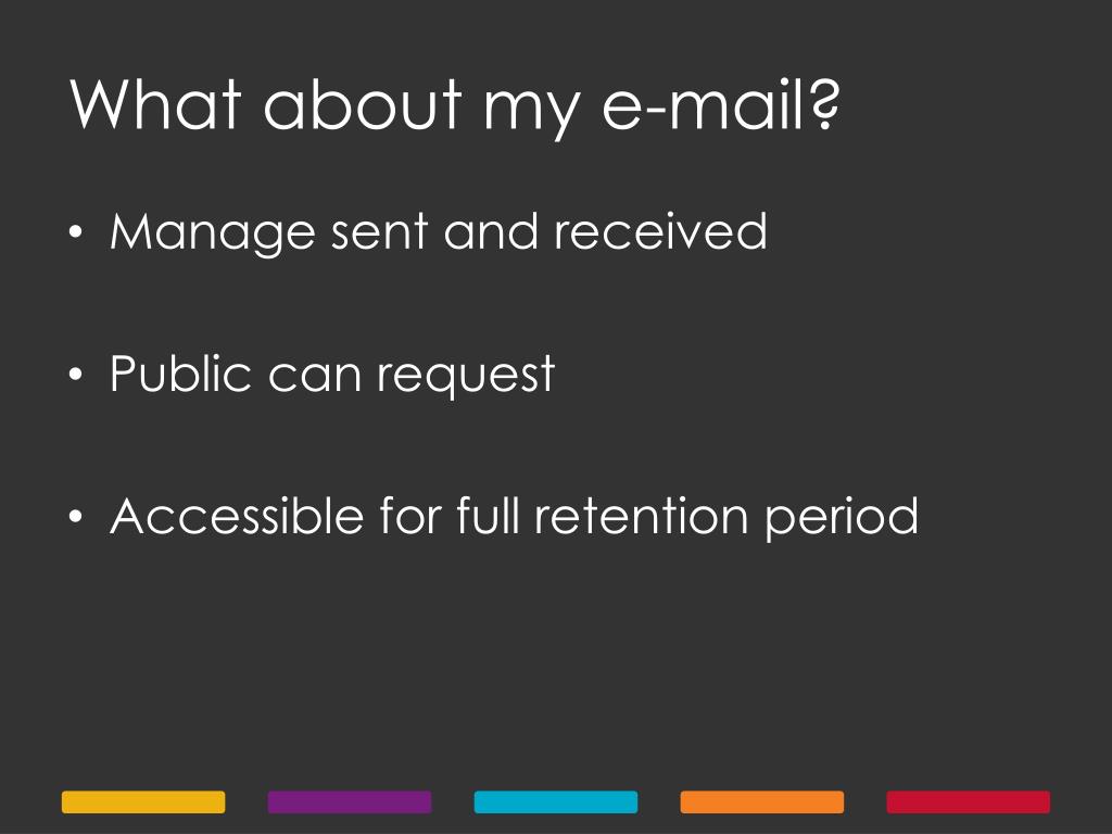 What about my e-mail? Manage sent and received Public can request Accessible for full retention period