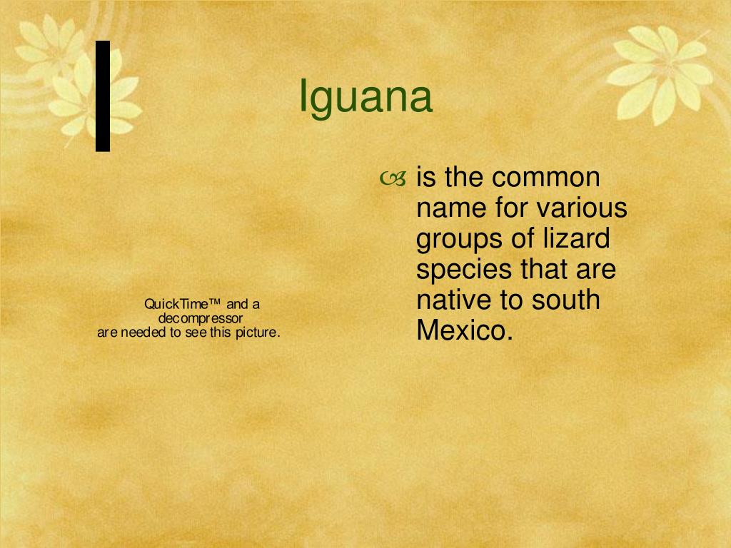 I Iguana • is the common name for various groups of lizard species that are native to south Mexico.