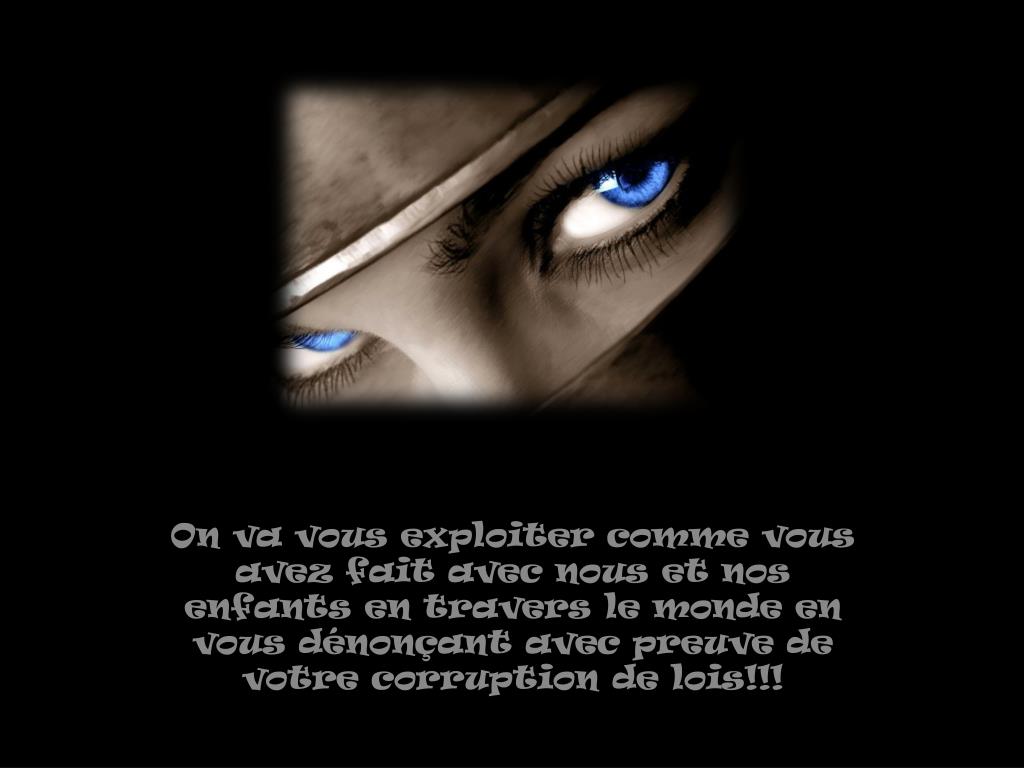 On va vous exploiter comme vous avez fait avec nous et nos enfants en travers le monde en vous dénonçant avec preuve de votre corruption de lois!!!