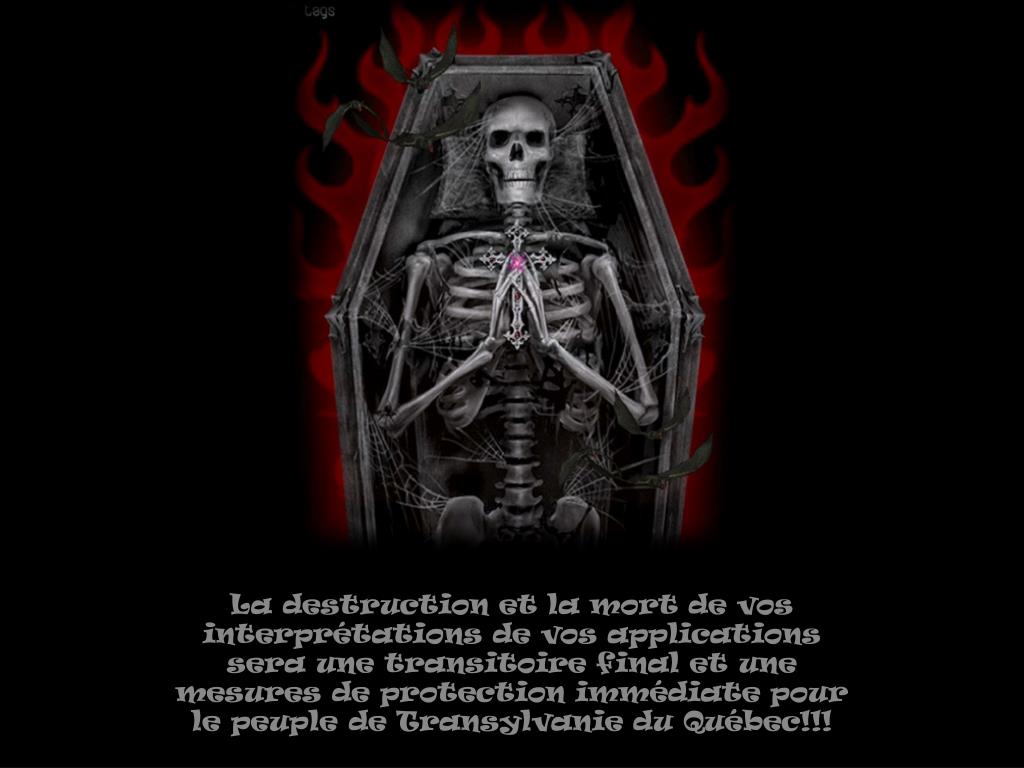 La destruction et la mort de vos interprétations de vos applications sera une transitoire final et une mesures de protection immédiate pour le peuple de Transylvanie du Québec!!!