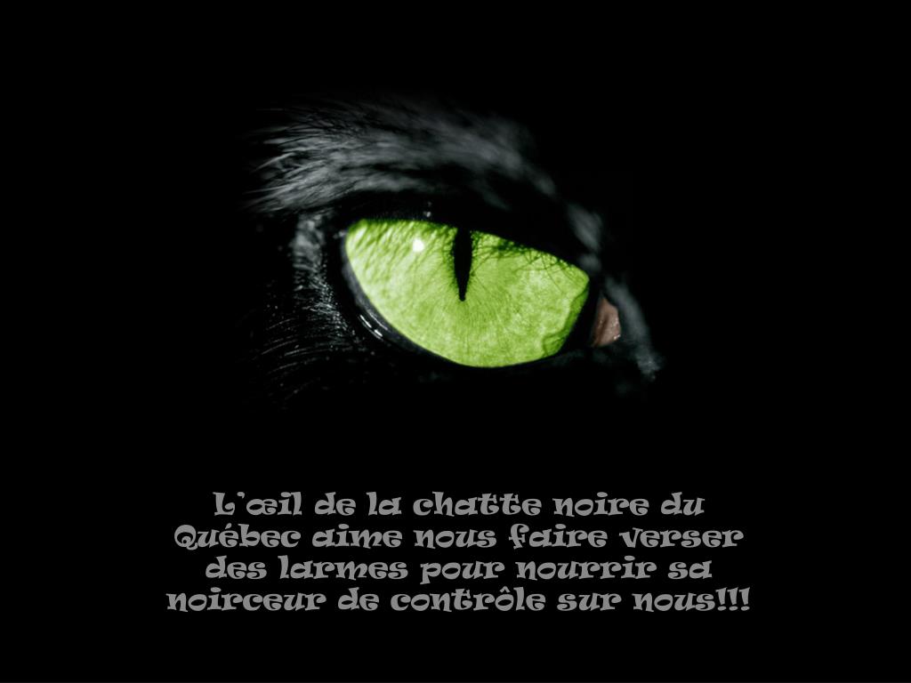 L’œil de la chatte noire du Québec aime nous faire verser des larmes pour nourrir sa noirceur de contrôle sur nous!!!