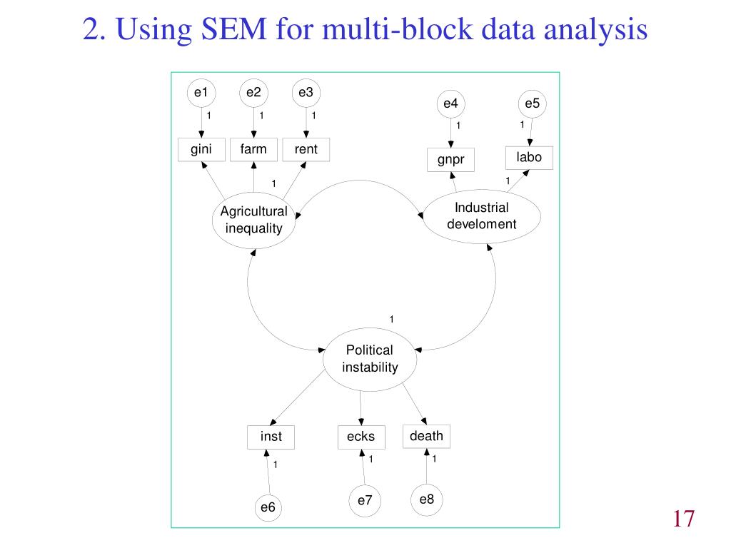 Economic inequality and political instability Agricultural inequality (X1) GINI + + INST FARM + 1 + + + RENT ECKS 3 + GNPR + - DEATH 2 - LABO Political instability (X3) Industrial development (X2)