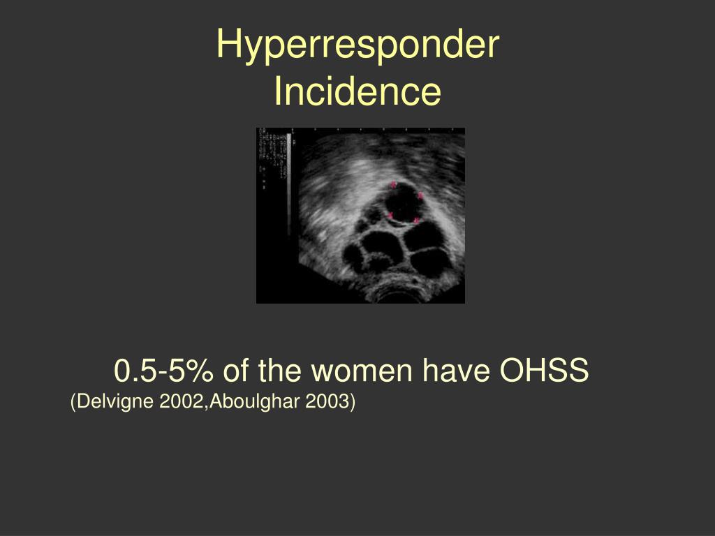 Hyperresponder Incidence 0.5-5% of the women have OHSS (Delvigne 2002,Aboulghar 2003)