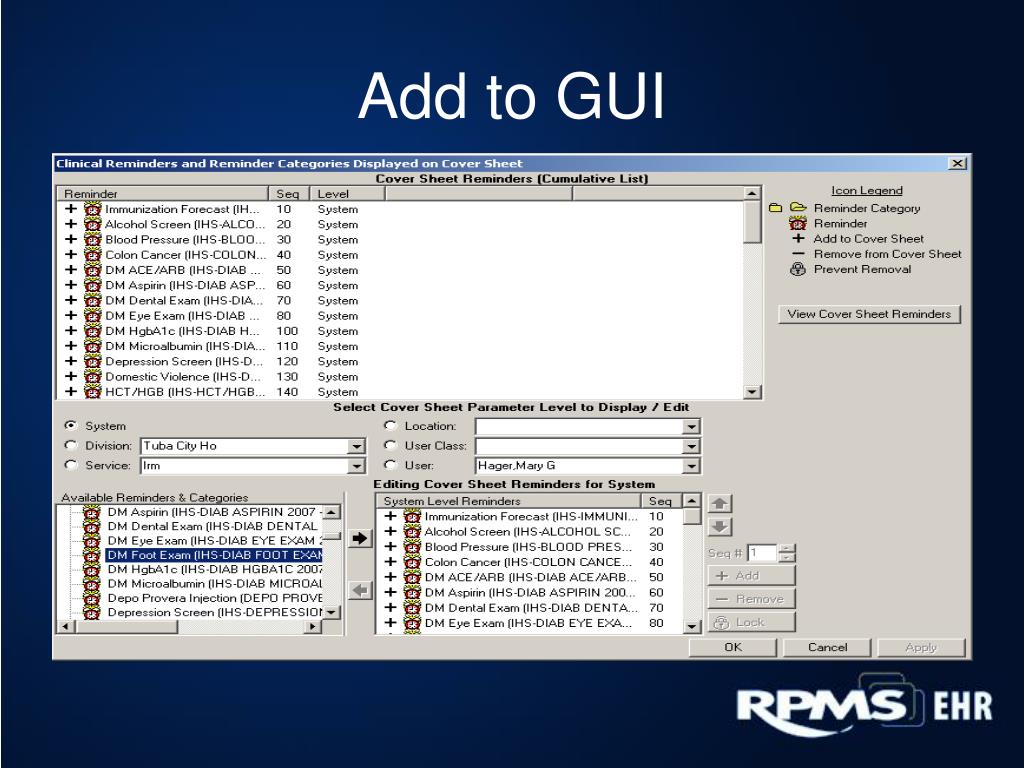 Add to GUI • Choose Edit Cover Sheet Reminder List