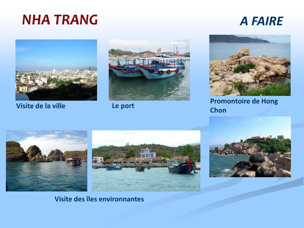 Visite des îles environnantes Le port NHA TRANG A FAIRE Promontoire de Hong Chon Visite de la ville