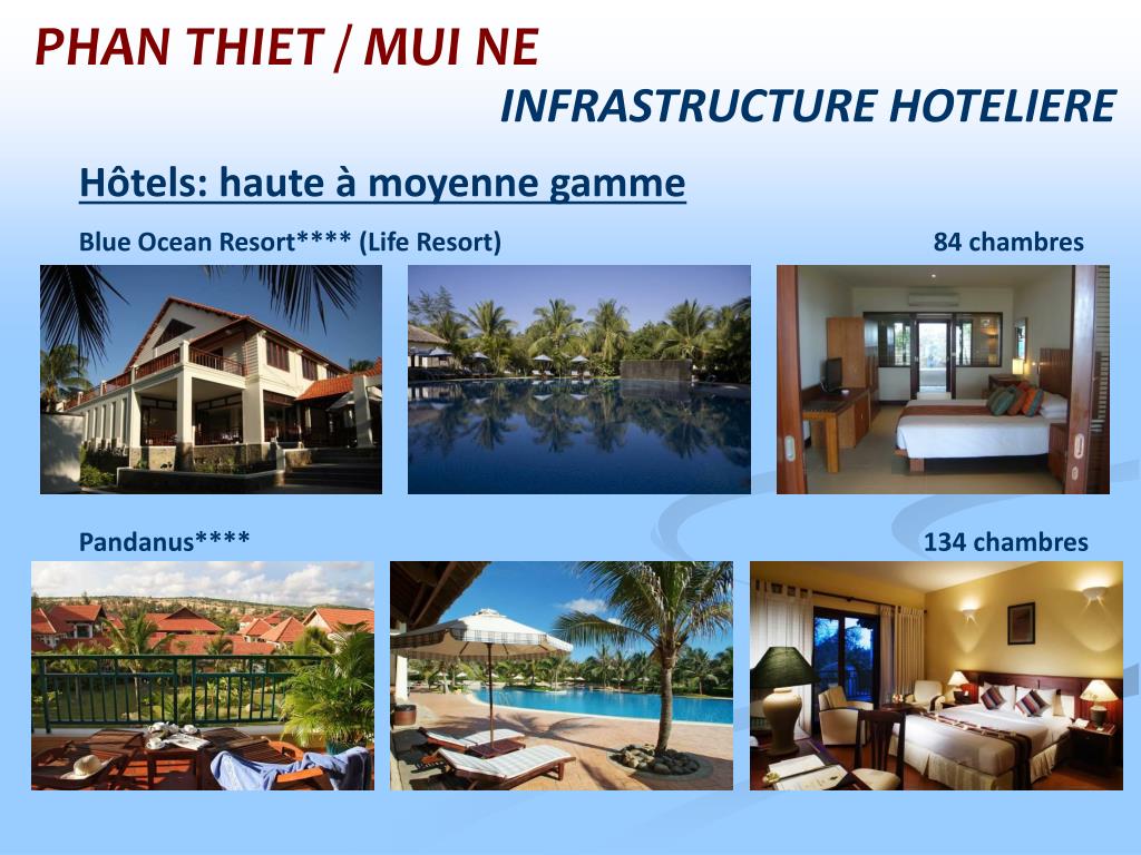 Blue Ocean Resort**** (Life Resort) 84 chambres Pandanus**** 134 chambres PHAN THIET / MUI NE INFRASTRUCTURE HOTELIERE Hôtels: haute à moyenne gamme
