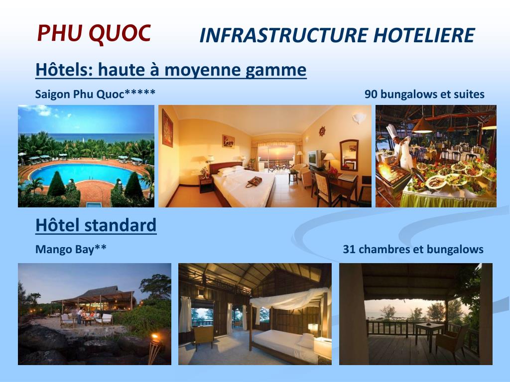 Saigon Phu Quoc***** 90 bungalows et suites Mango Bay** 31 chambres et bungalows PHU QUOC INFRASTRUCTURE HOTELIERE Hôtels: haute à moyenne gamme Hôtel standard