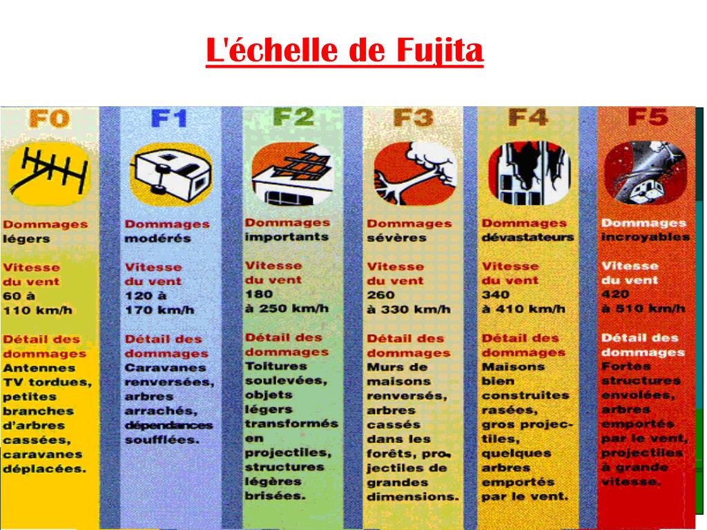 Dégâts de moyenne ou petite échelle LES TORNADES La tornade est un vent d'orage en forme d'entonnoir qui tourne sur lui-même. Une tornade peut être très destructrice : ses vents peuvent atteindre plus de 400 km/h! De plus, il est impossible de prévoir le chemin qu'elle prendra.