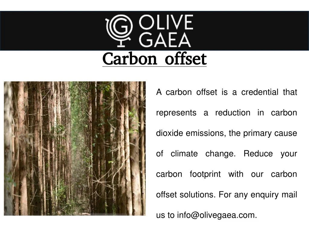 Carbon offset A carbon offset is a credential that represents a reduction in carbon dioxide emissions, the primary cause of climate change. Reduce your carbon footprint with our carbon offset solutions. For any enquiry mail us to info@olivegaea.com.