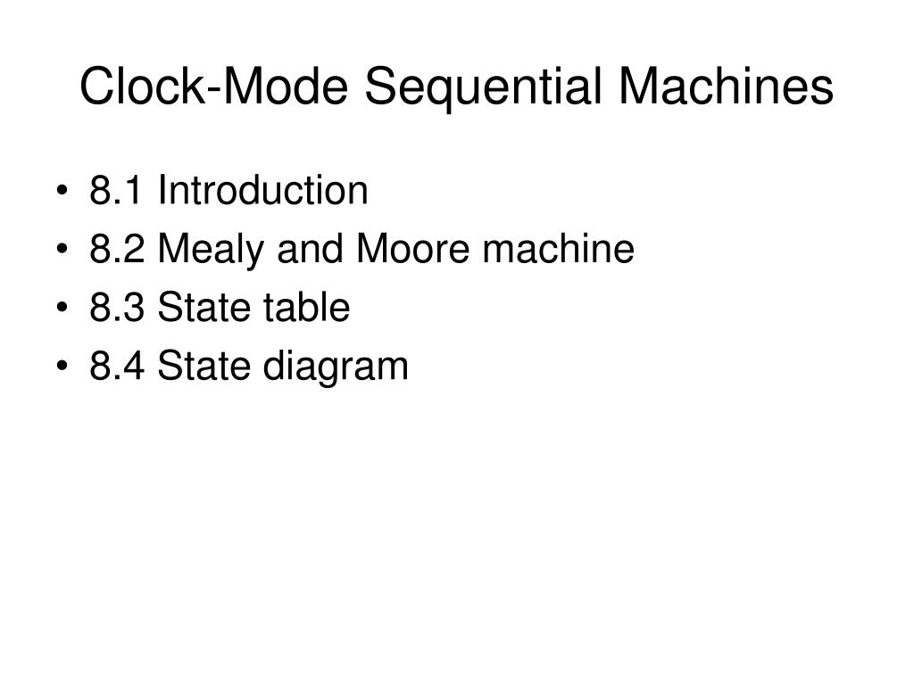 Clock-Mode Sequential Machines • 8.1 Introduction • 8.2 Mealy and Moore machine • 8.3 State table • 8.4 State diagram